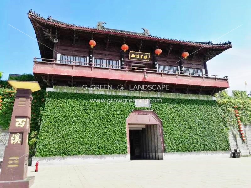 G-Green Landscape company made a giant vertical plant wall for this Ancient City. We built a 150 square meter living wall on the city wall. The flat grey old wall looks vigorous after covered by green plants. Every leaf brings fresh blood into this old building, which added the natural beauty to the historic relic.